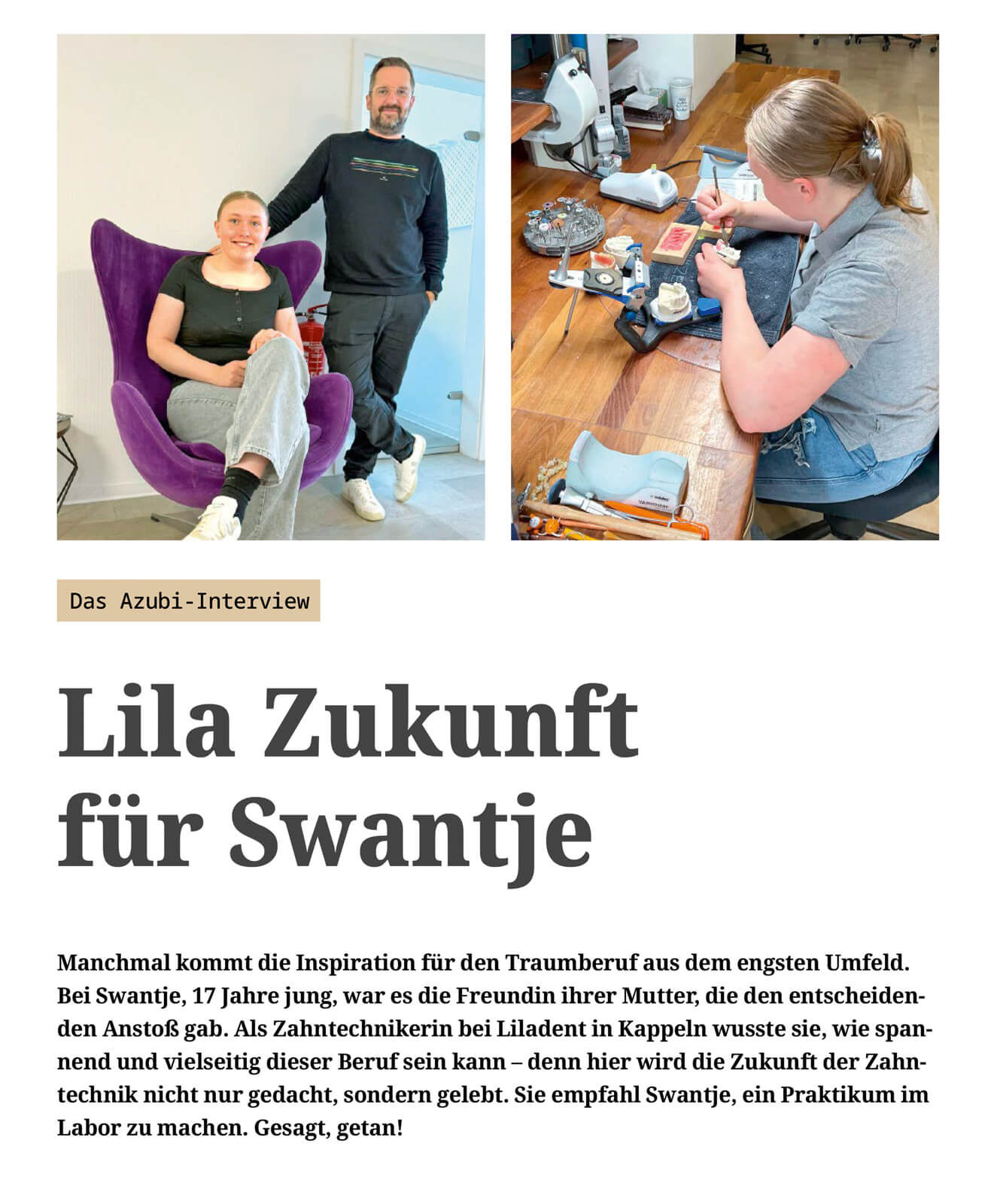 Nordquadrat - News & Presseberichte - Das Dental Labor - Azubis - Swantje Praktikum bei Liladent