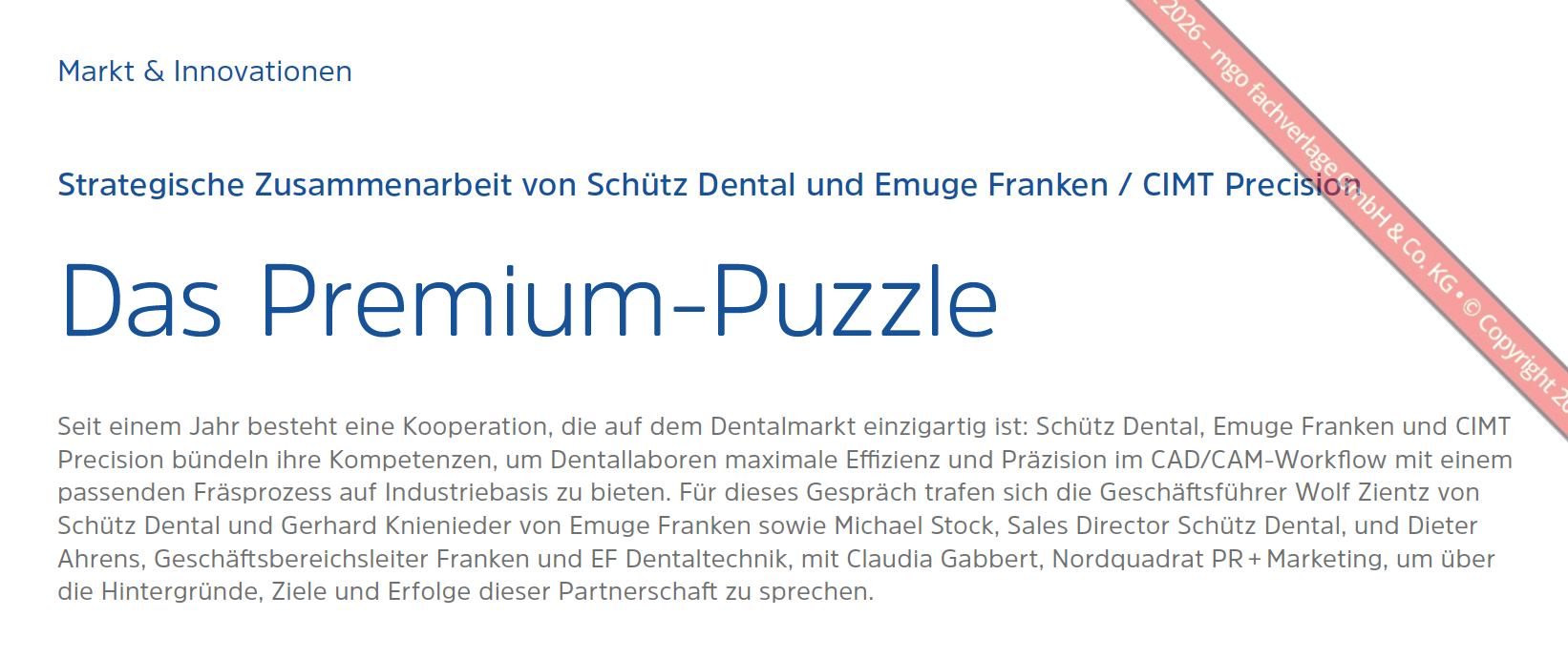 Seit einem Jahr besteht eine Kooperation, die auf dem Dentalmarkt einzigartig ist: Schütz Dental, Emuge Franken und CIMT